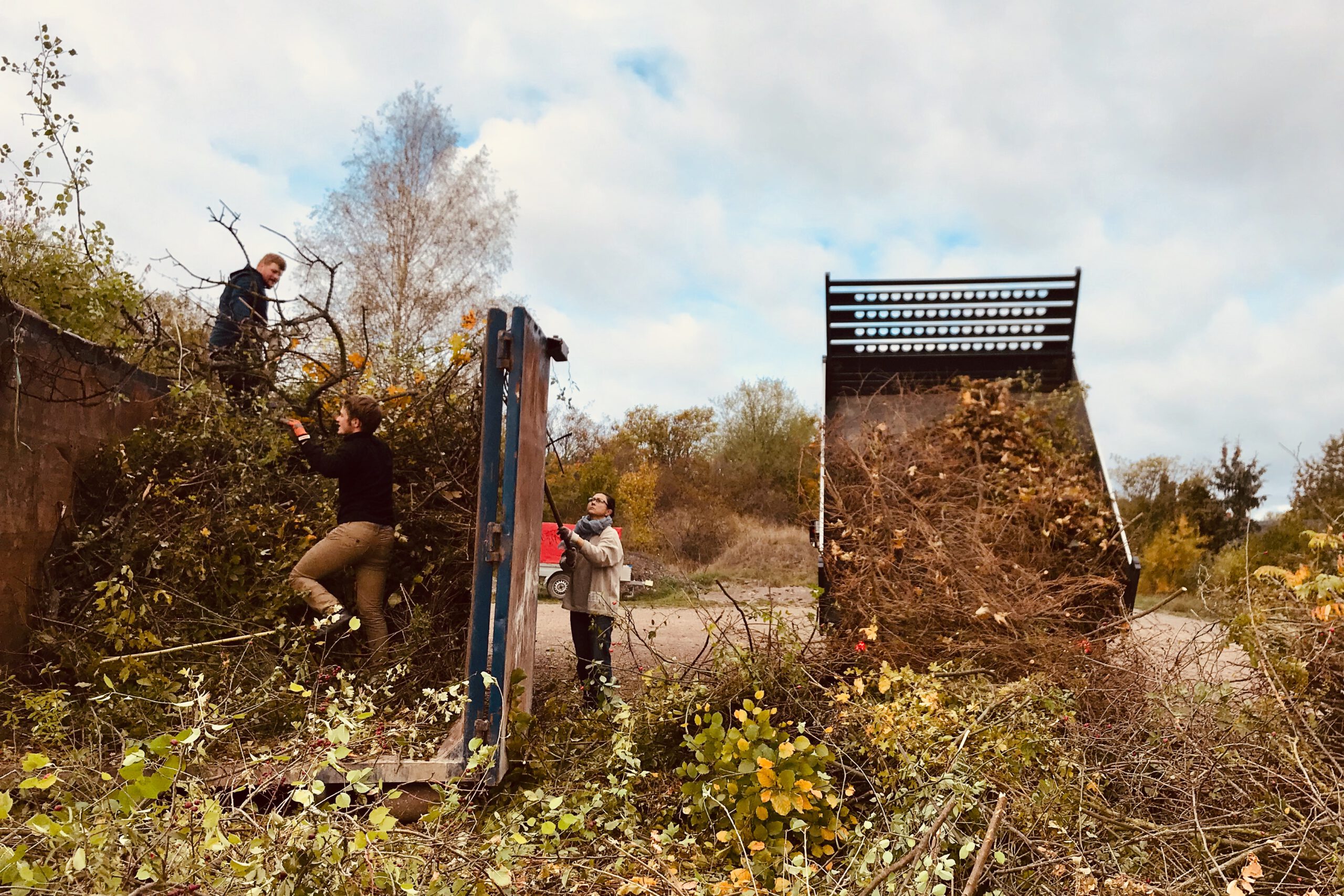 - Mit Kleintransportern wurden größere Äste und Buschwerk zu den Containern transportiert.